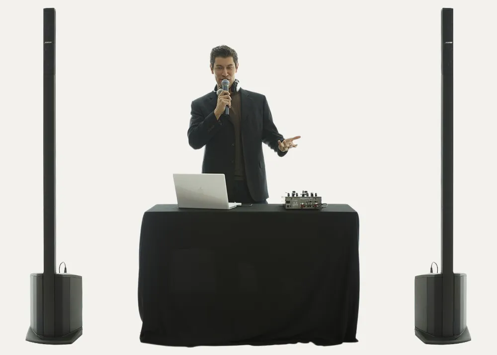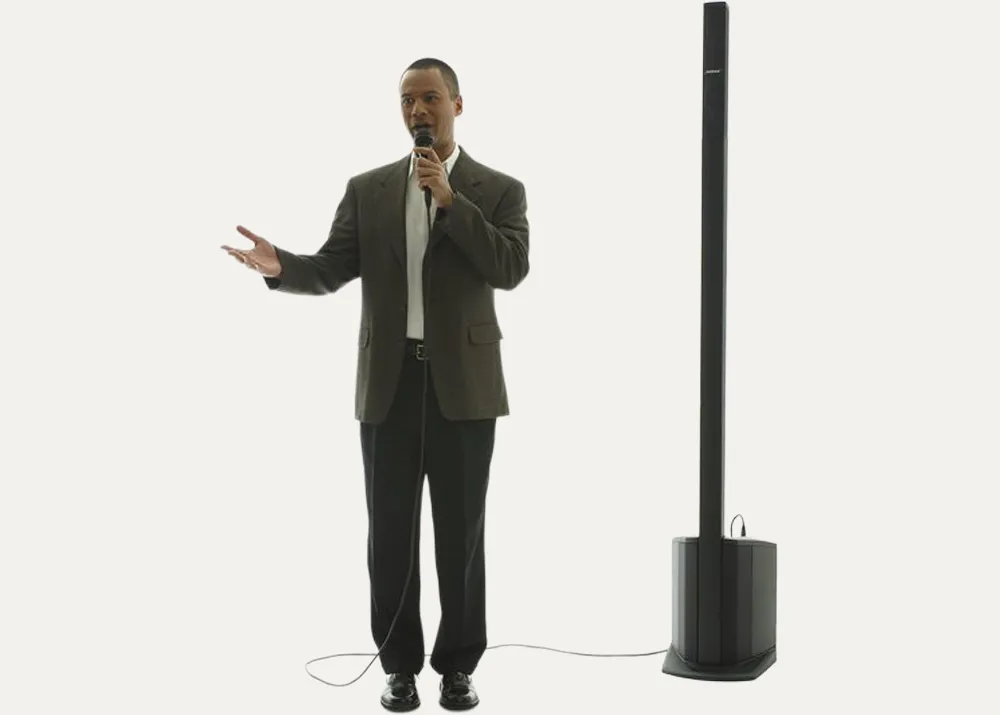 The Bose L1 Compact delivers clear, wide sound coverage while the wired microphone ensures stable, dependable speech amplification.